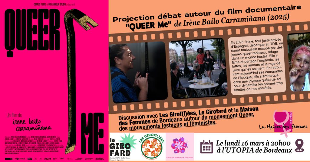 Retrouvez nous à l’Utopia pour assister à la projection du film documentaire « QUEER Me » de Irène Bailo Carramiñana le lundi 16 mars à 20h.