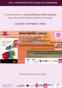 JEUDI 13 FEVRIER- 18h30 Nous organisons, en 2025, un cycle de rencontres autour du livre Le travail des femmes. Inégalités, défis et perspectives dans neufs